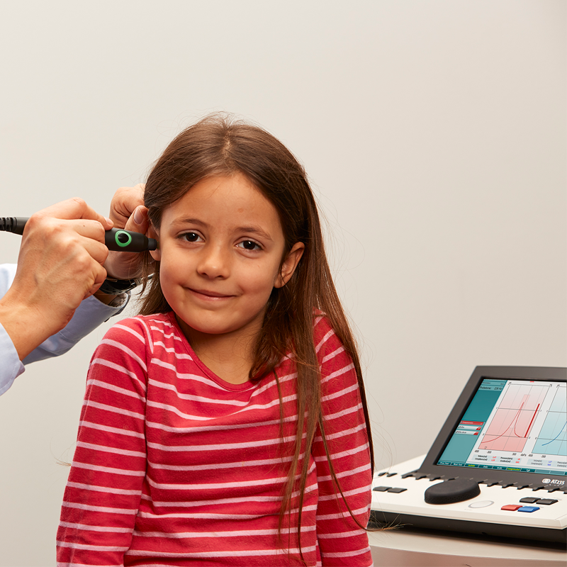 O AT235 é um analisador de ouvido médio automático ideal para avaliações de teste e de diagnóstico. O AT235 inclui timpanometria padrão, teste de função da tuba auditiva, reflexo acústico ipsilateral e contralateral e decay do reflexo e audiometria de condução aérea.